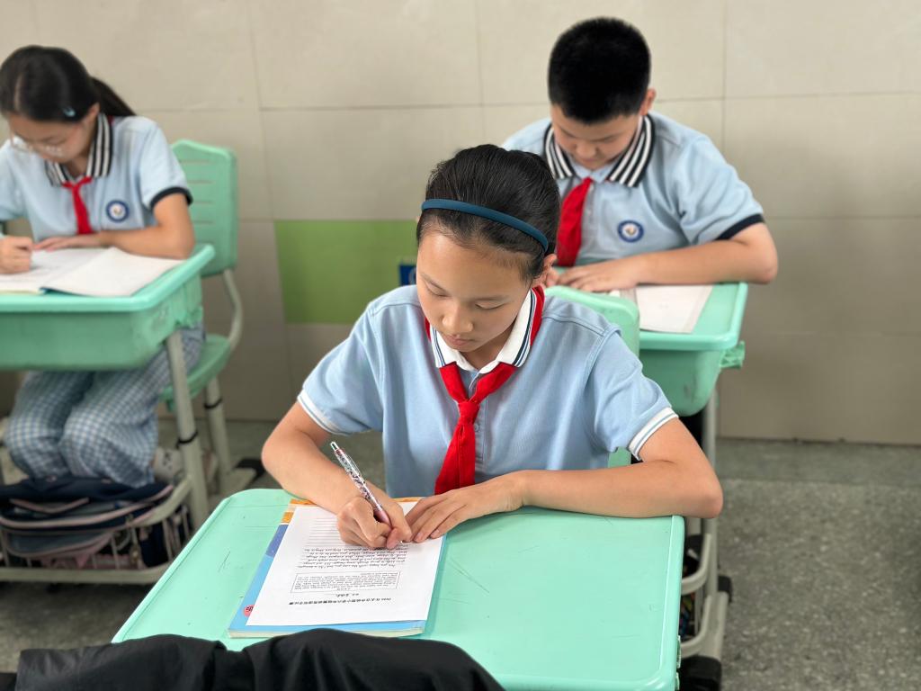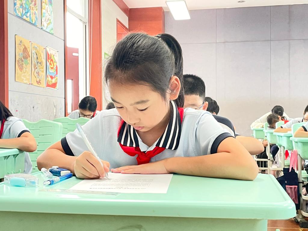 赛前,各班积极动员,同学们充分利用课余时间认真练习,从字母的规范占格到单词与句子的连贯书写,每一处细节都力求精准与美观。比赛现场,同学们坐姿端正、握笔规范、神情专注,在答题纸上一笔一画认真书写指定内容,展现了良好的书写风貌。