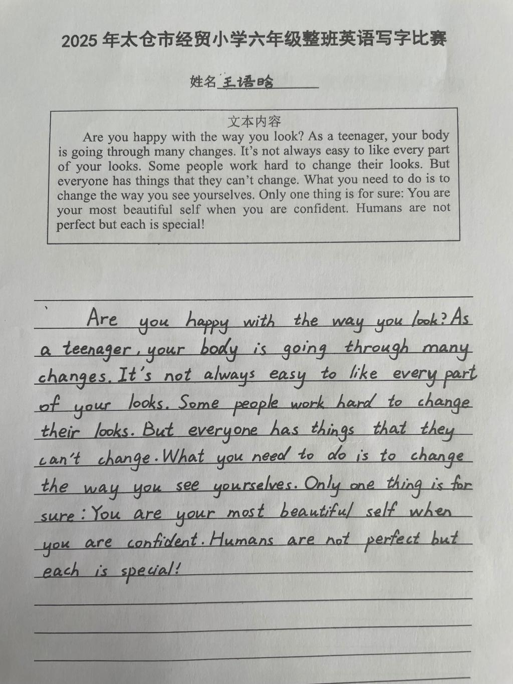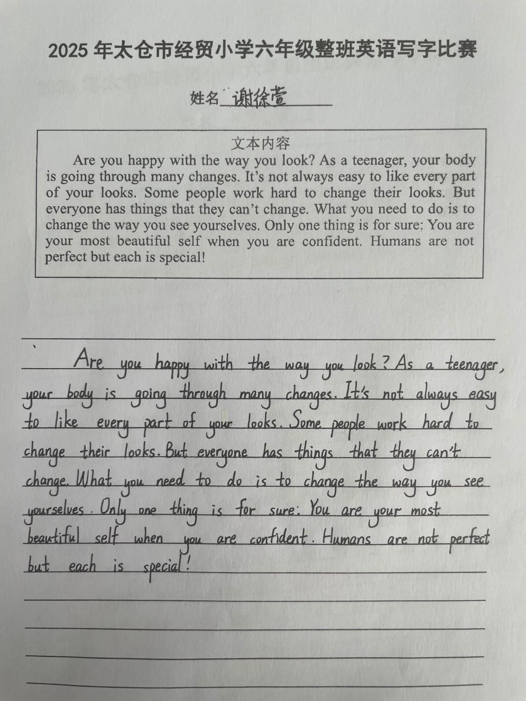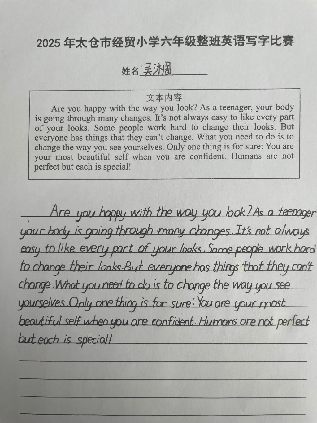 本次书写比赛不仅为同学们搭建了展示自我的舞台,更切实提升了大家的英语书写能力,营造了“比、学、赶、超”的浓厚学习氛围。今后,我校将继续开展形式多样的学科活动,助力每一位学生全面成长。