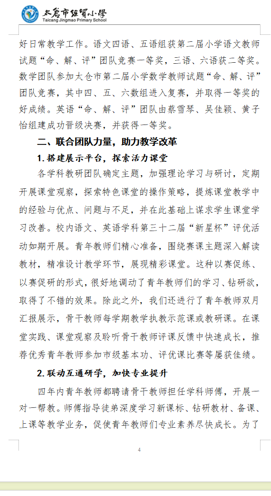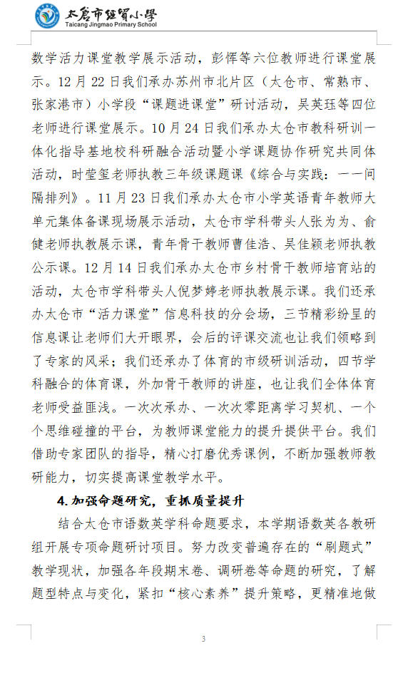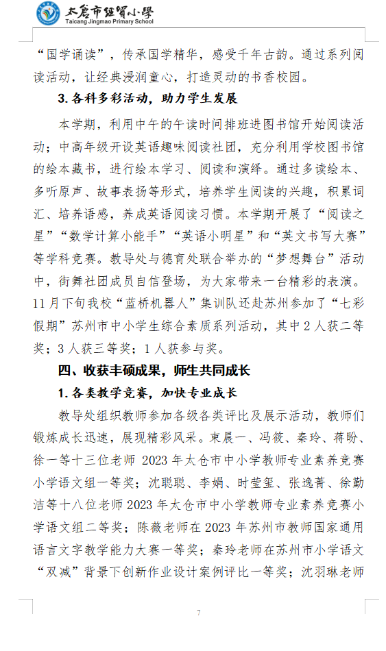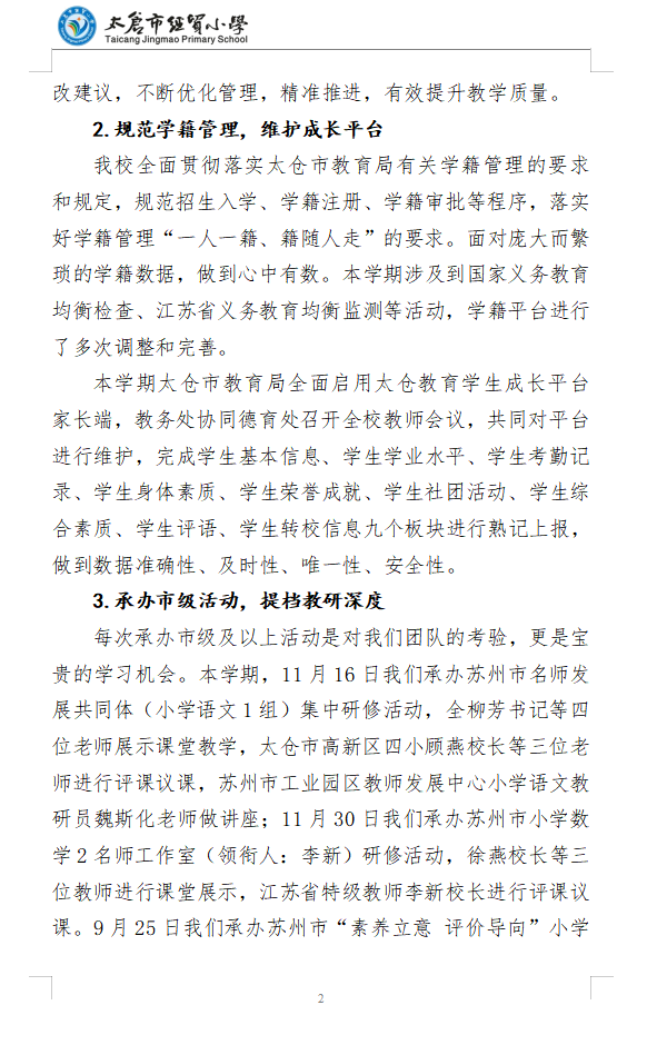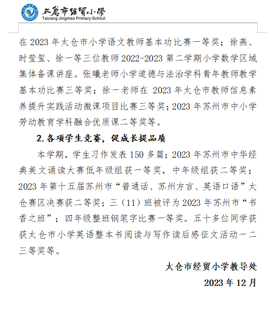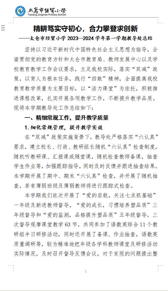 2023~2024学年第一学期太仓市经贸小学教导处工作总结