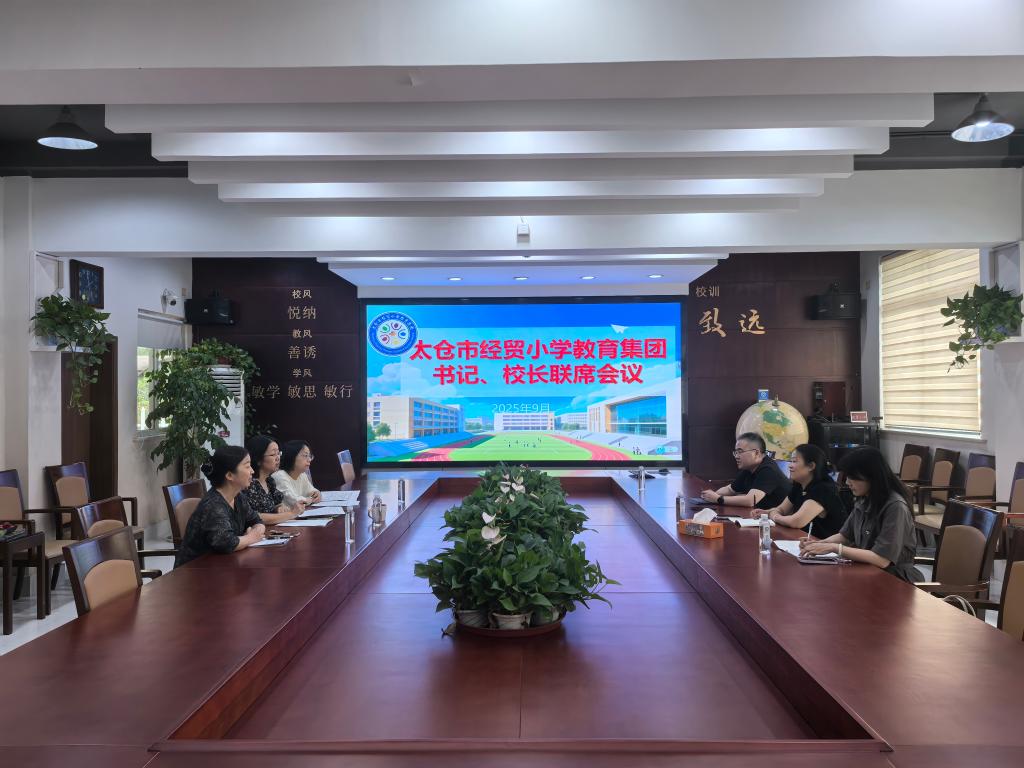 为全面提升教育集团办学质量,科学谋划新学期发展方向,进一步强化集团化办学优势,2025 年 9 月 24 日下午,太仓市经贸小学教育集团 2025-2026 学年第一学期期初书记、校长联席会议在经贸小学顺利举行。太仓市经贸小学党总支全柳芳书记、经贸小学徐燕校长,以及集团内成员校——太仓市弇山小学顾健校长、太仓市金仓湖小学姚雁钰校长,同经贸小学王银菊副校长共同出席会议。