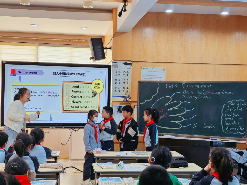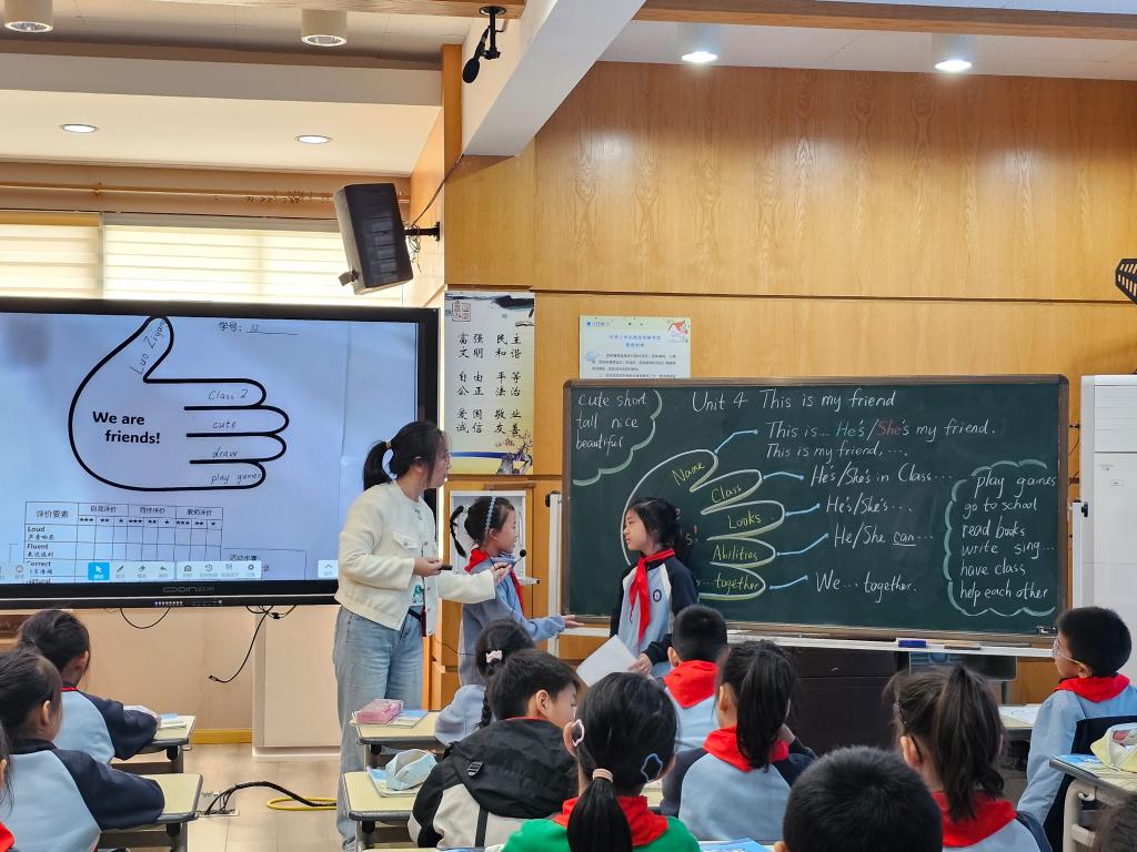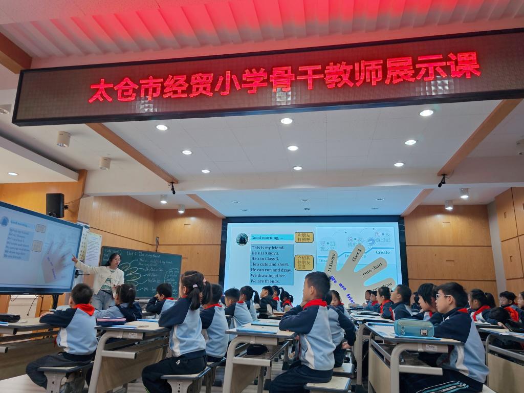2025年10月22日上午,省“十四五”规划课题《基于结构化思维的小学英语跨学科主题学习设计与实施研究》10月课例研讨活动于太仓市经贸小学报告厅开展。课题核心组成员倪梦婷老师执教3A Unit 4 This is my friend跨学科主题学习研究课,课题组成员参与了本次观课与研讨活动。