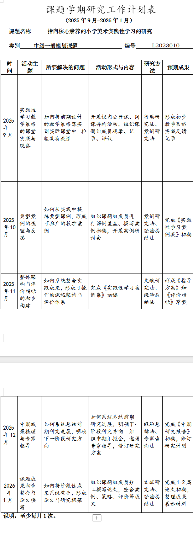 2025年秋季学期课题研究工作计划安排表